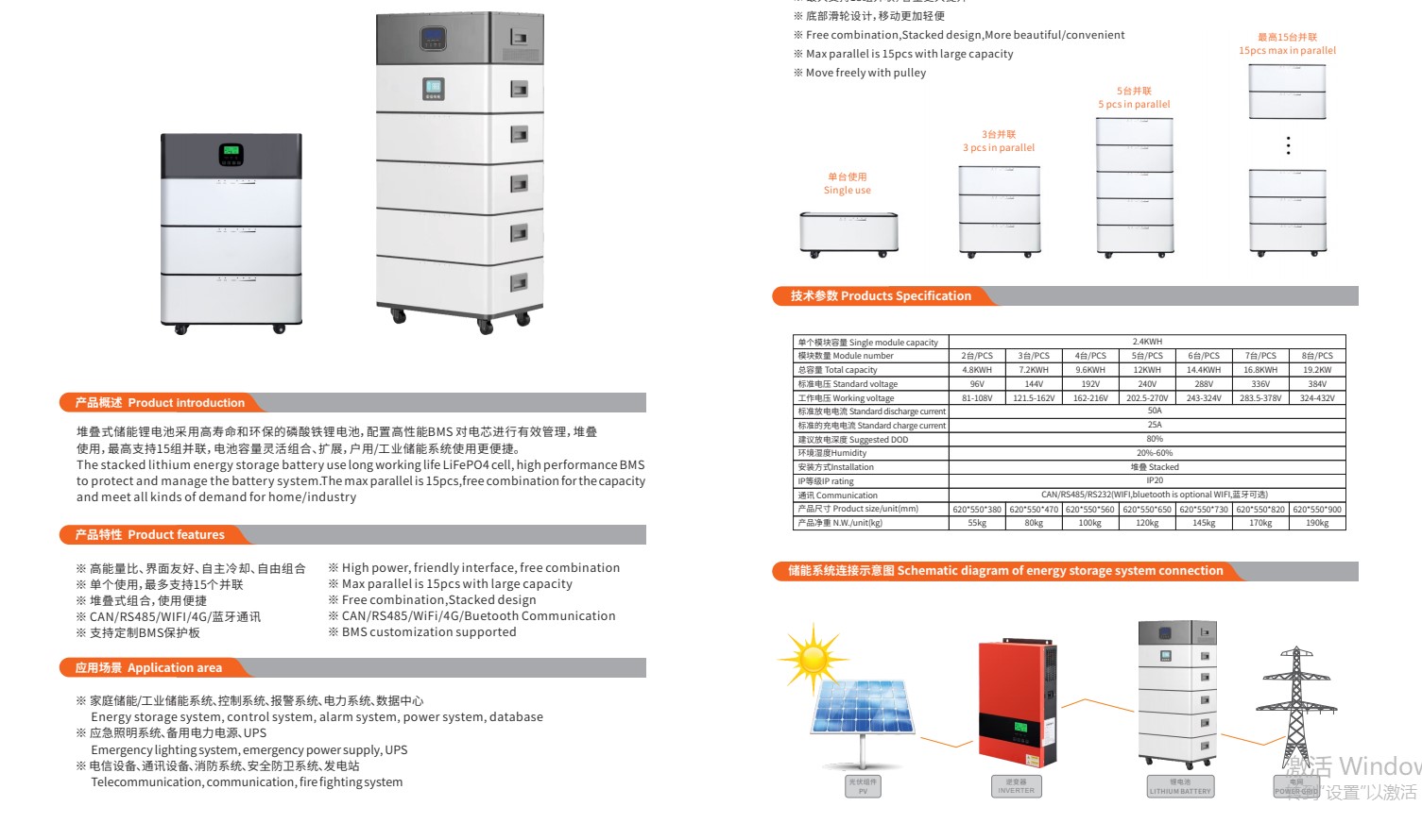 2. energy storage bricks are stacked in parallel with 2units or 6UNITS batteries. In the process of power transmission, power consumption is reduced.