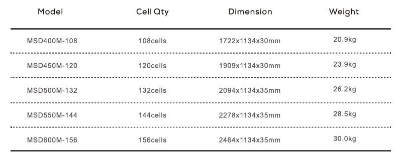 MSD400-600W Mono Half-cut Single / Double Glass Module Series